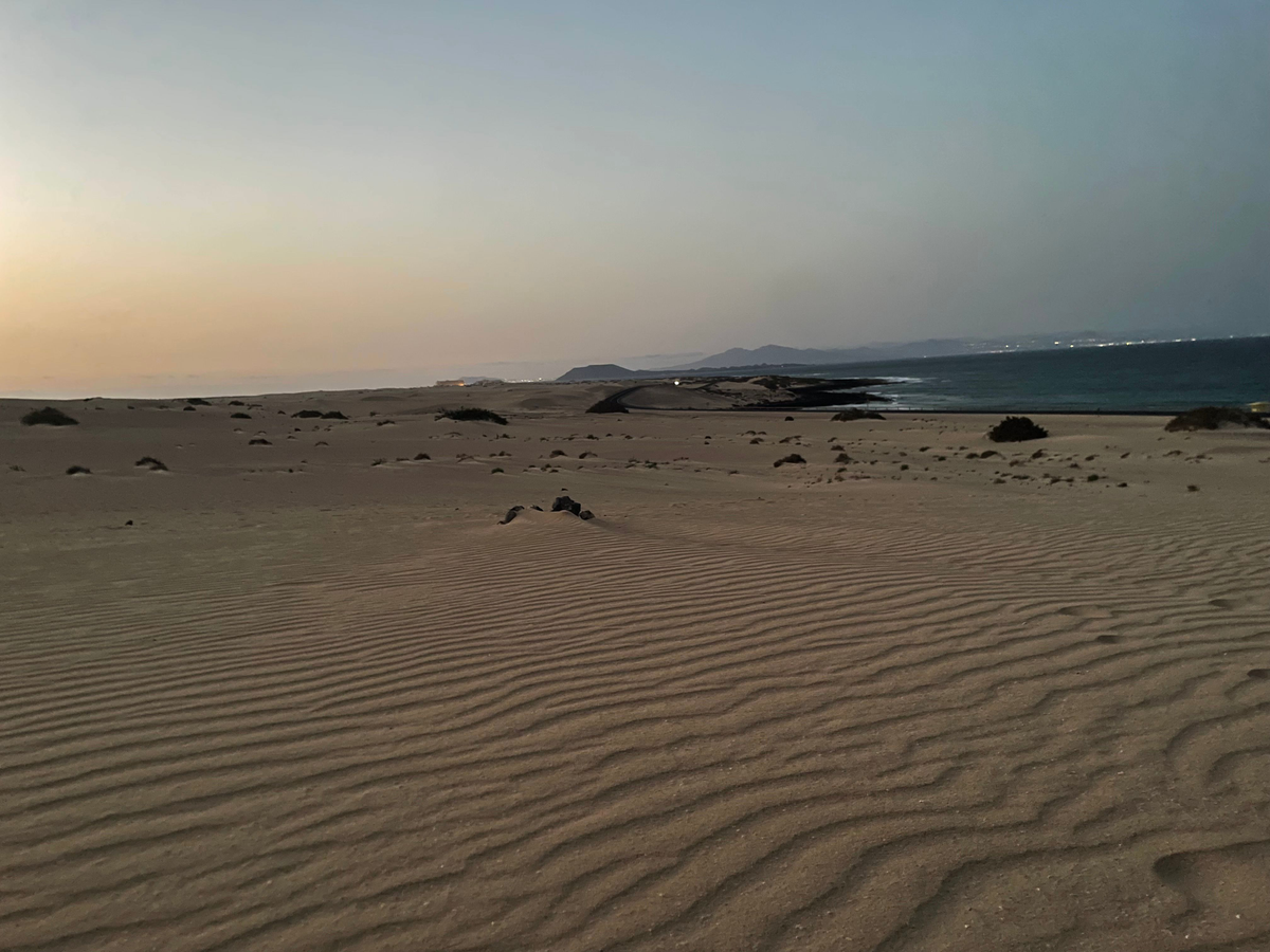 Dunas de Corralejo at dusk, in Fuerteventura, Spain.